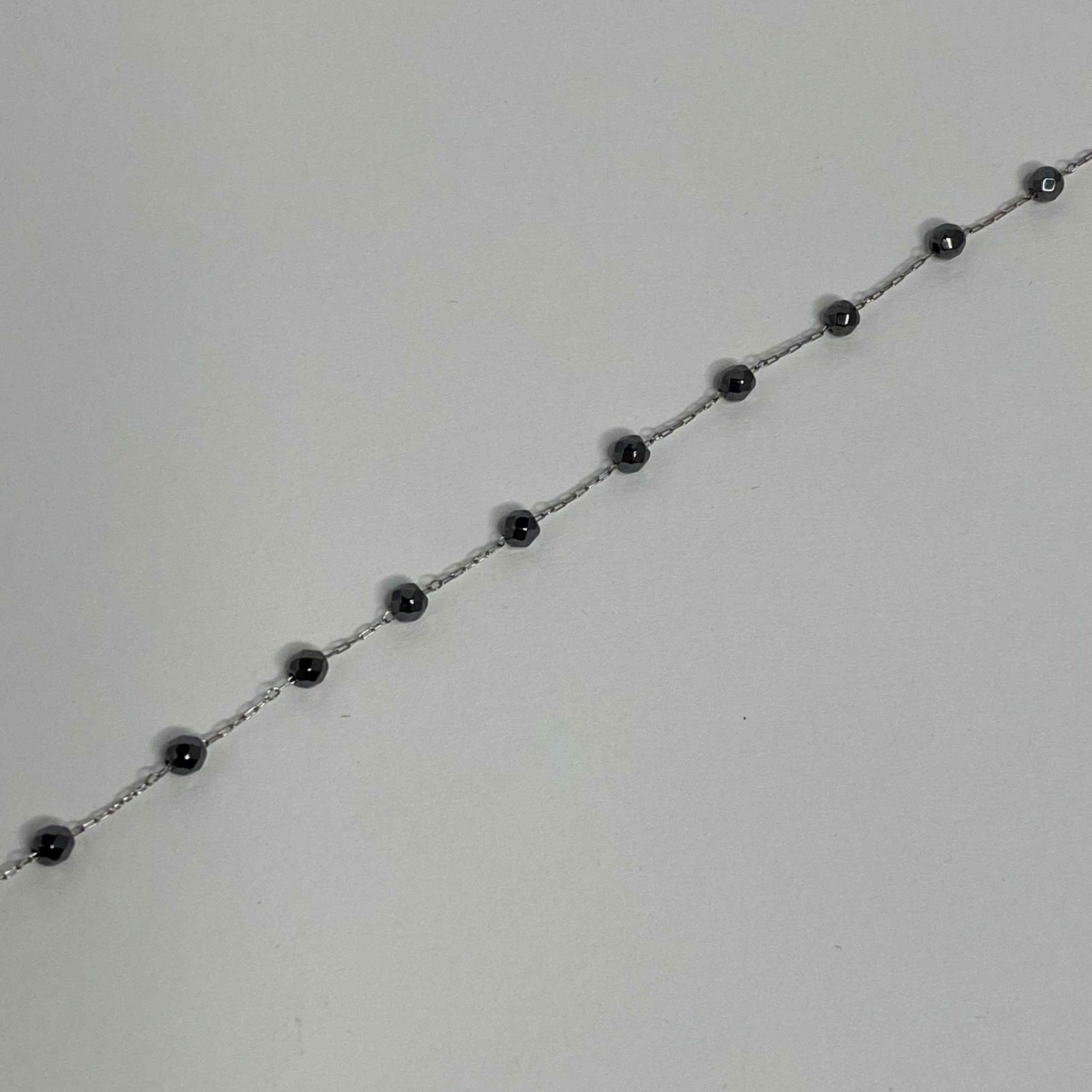Add a pop of colour and character to your jewellery collection with this handmade black and silver bracelet. Featuring a silver-toned chain adorned with black beads, this piece offers a delicate yet eye-catching look.