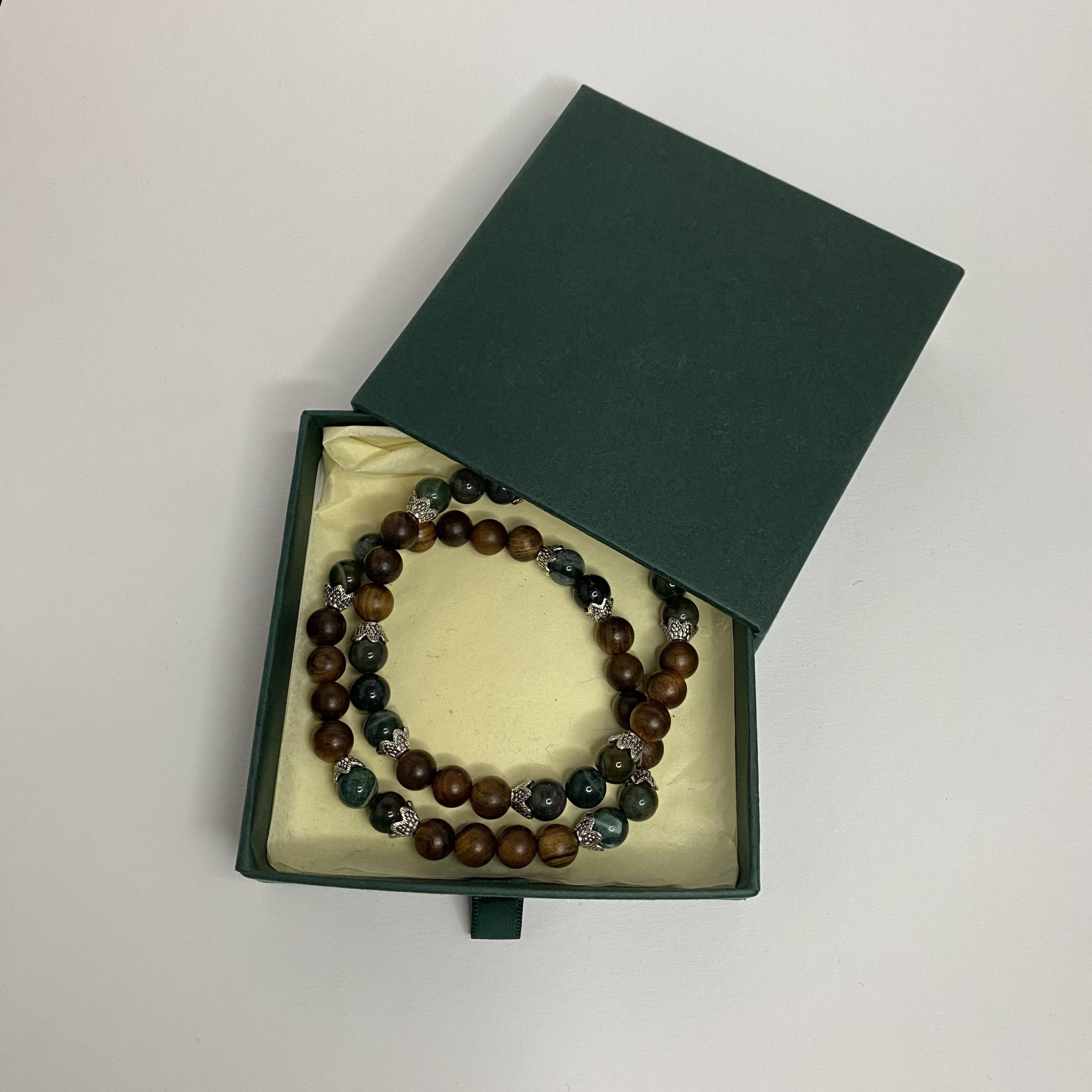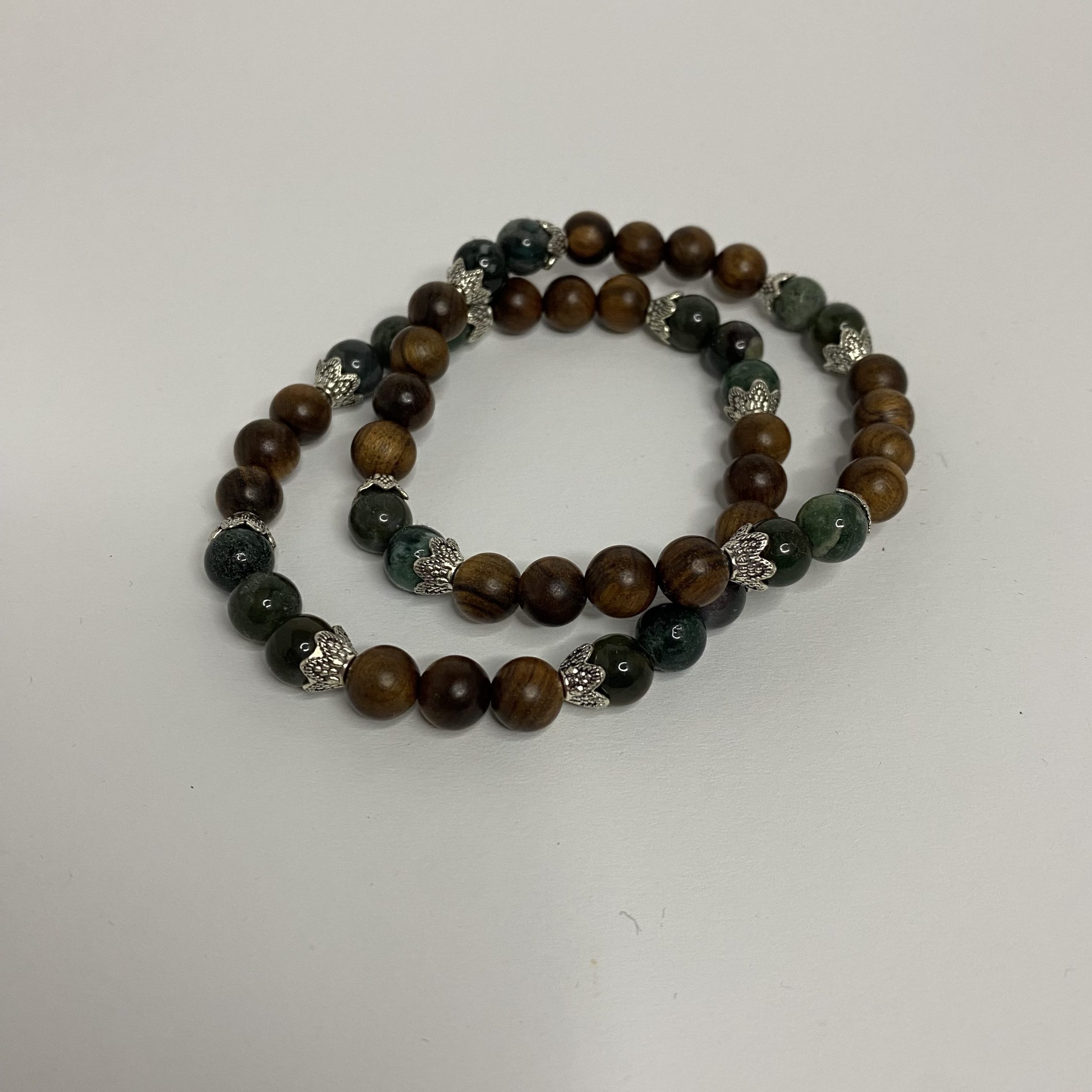 Material: Stainless steel beads, indian agate beads, wooden beads