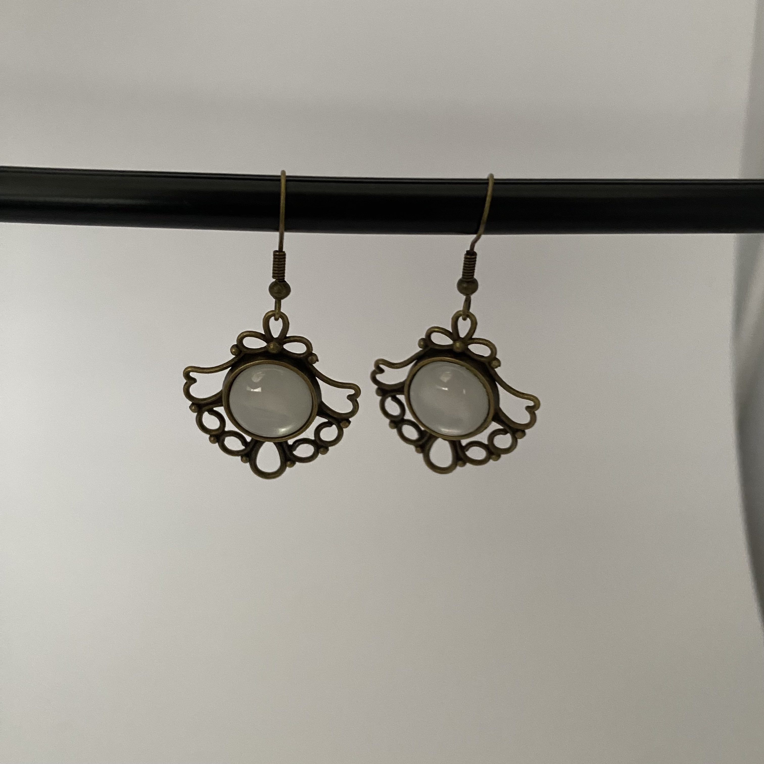 Add a touch of vintage sophistication to your jewellery collection with these vintage-inspired white earrings. Featuring a white centre set in an intricate decorative frame, these earrings combine classic elegance with a bold statement design.