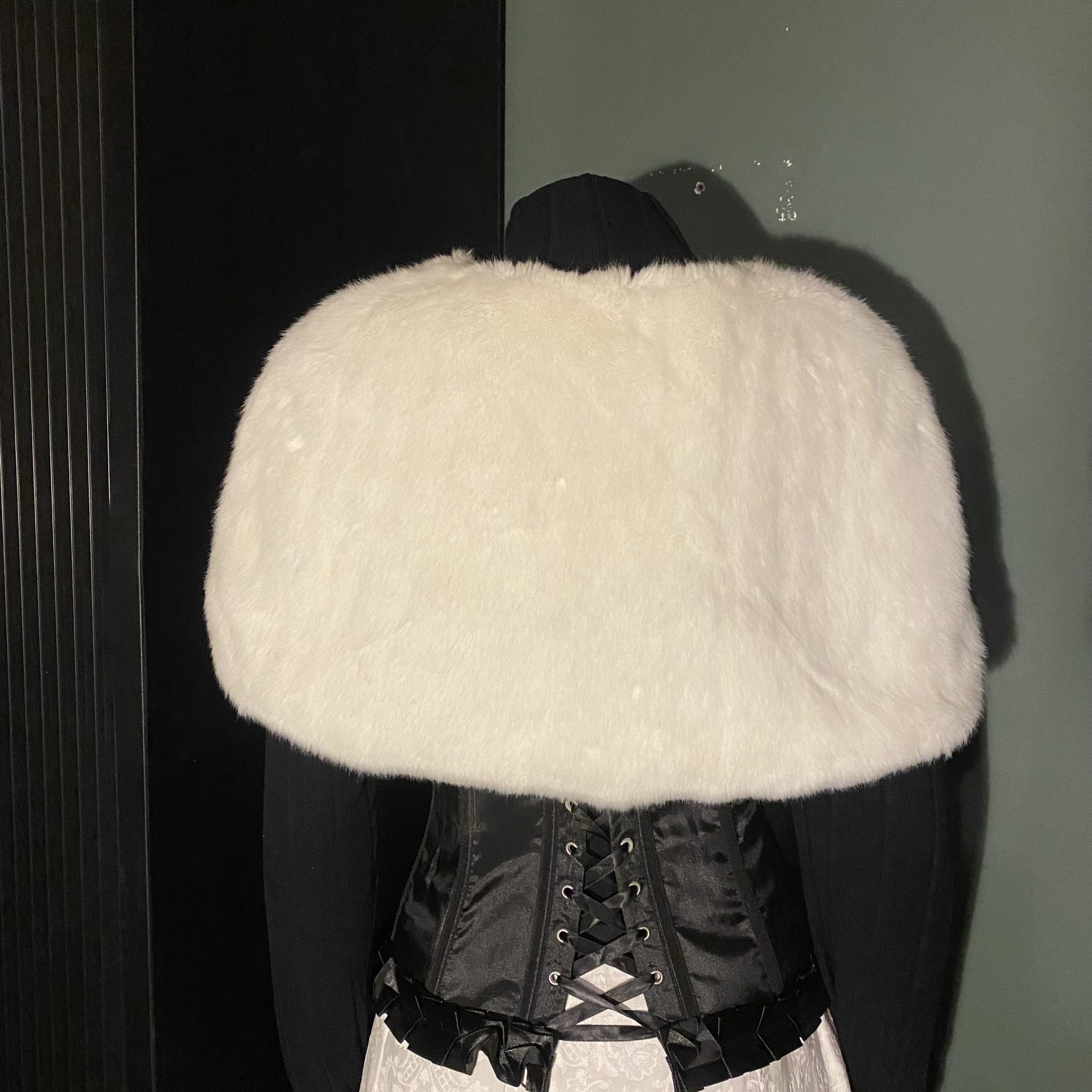 Add a touch of luxury and timeless grace to your look with this soft white faux fur coat. This elegant piece drapes beautifully over the shoulders, creating a sophisticated silhouette that evokes the charm of classic winter tales and royal fantasy fashion.