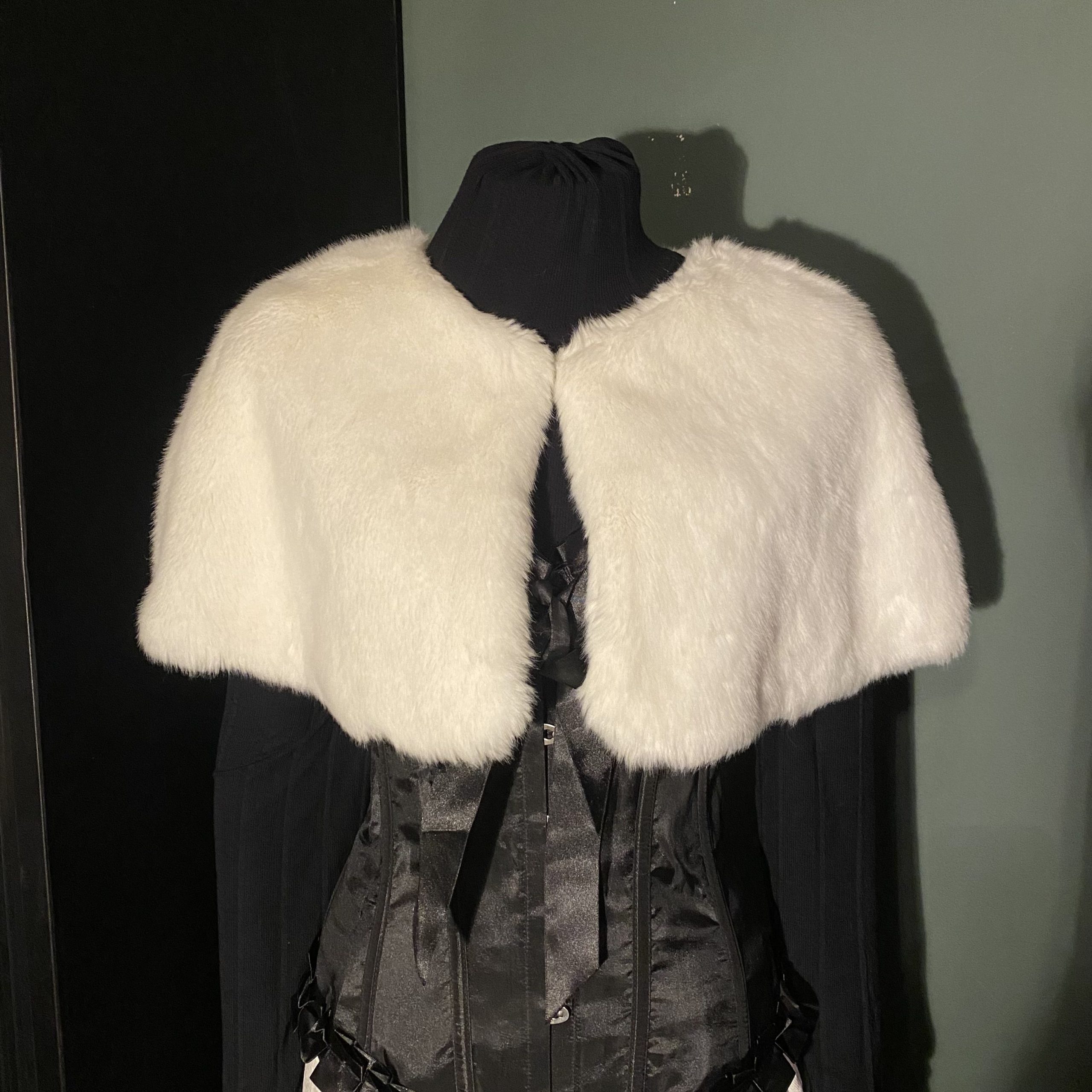 Perfect for fantasy fairs, themed photoshoots, weddings, or elegant winter outfits, this cape combines warmth and style in one stunning accessory. The short length makes it easy to wear over dresses, corsets, or coats for a regal finishing touch.